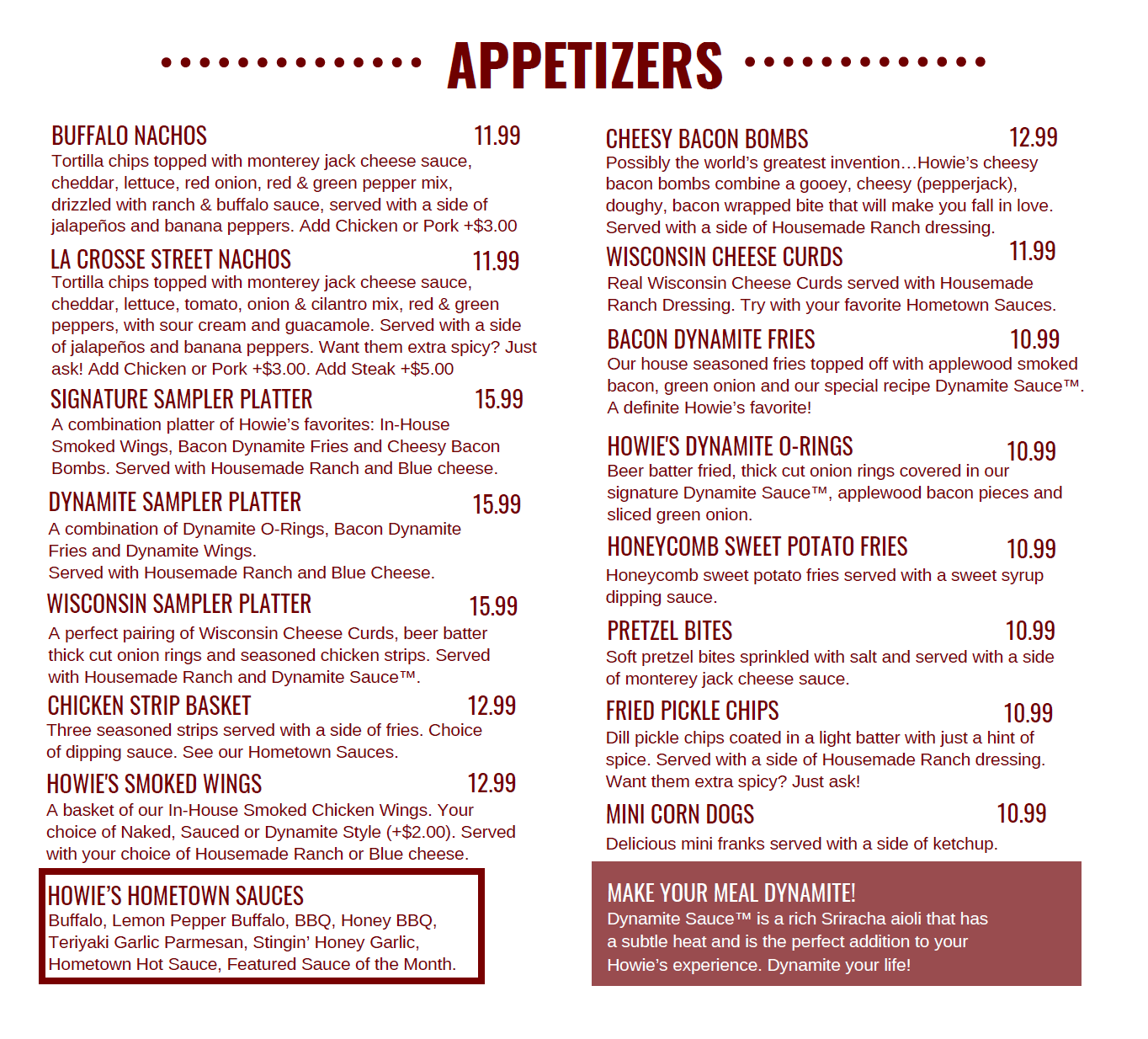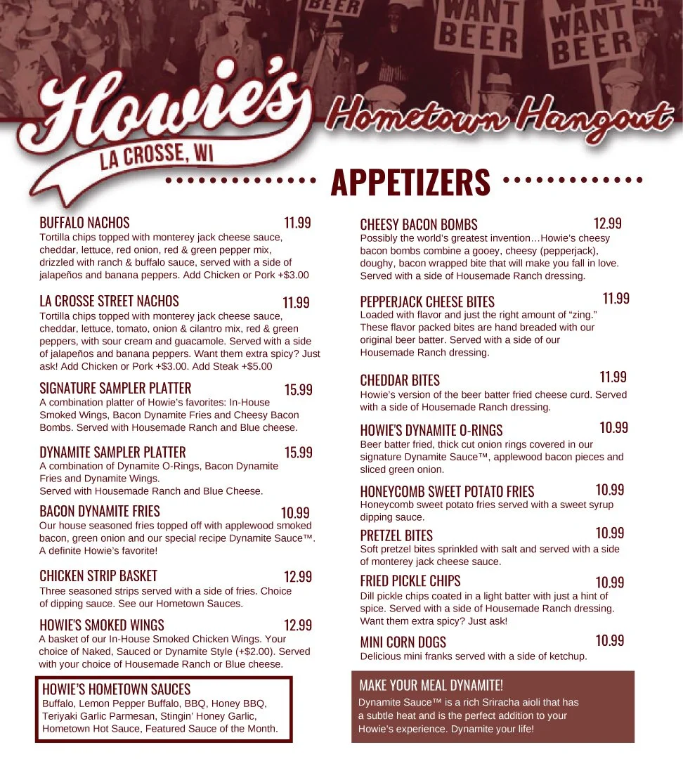 Start your Howie’s dining experience off right with one of our mouthwatering appetizers!