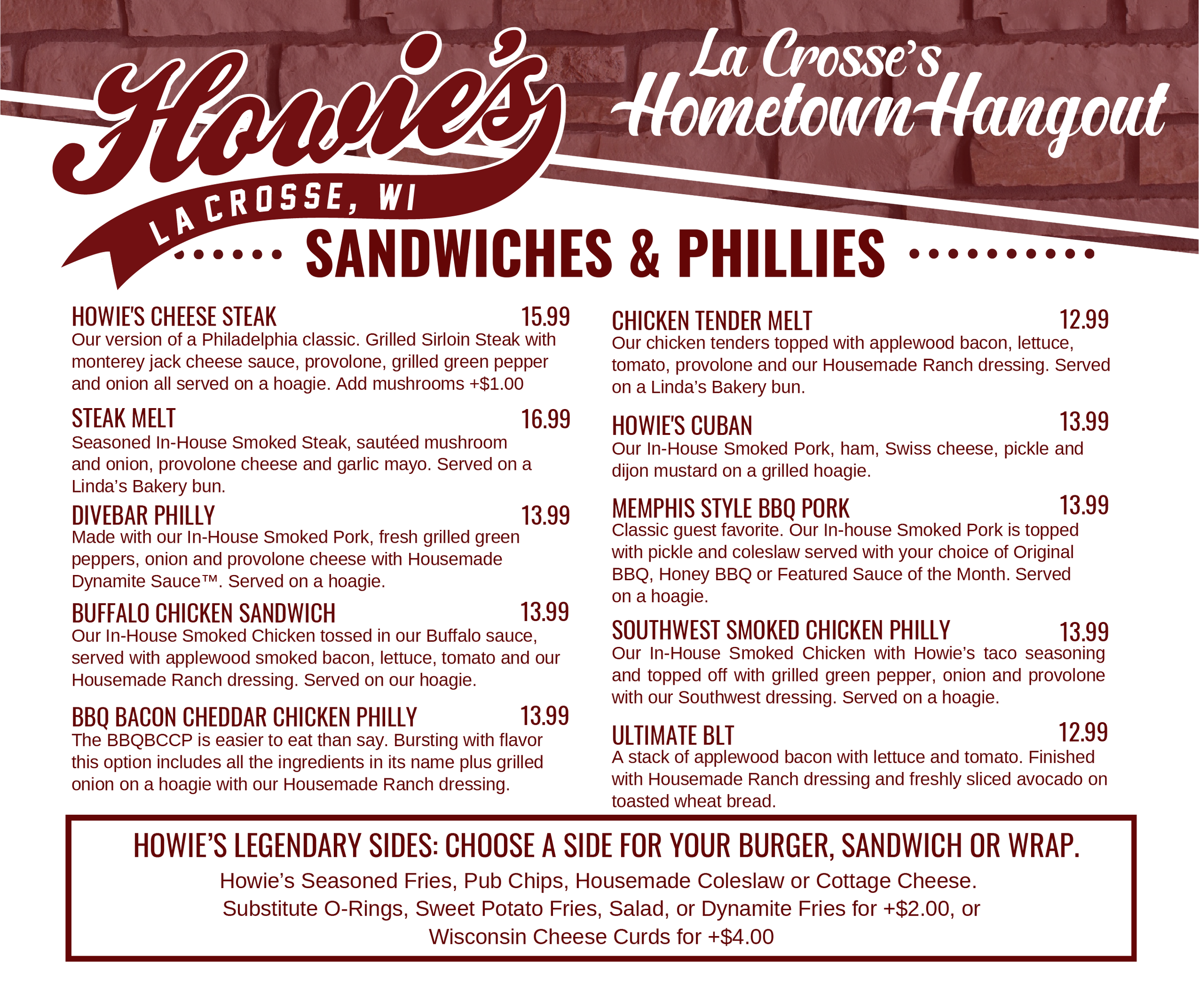 Nothing turns a good day into great day like a sandwich or Philly from Howie’s. Don’t just take our word for it—come down and have one for yourself!