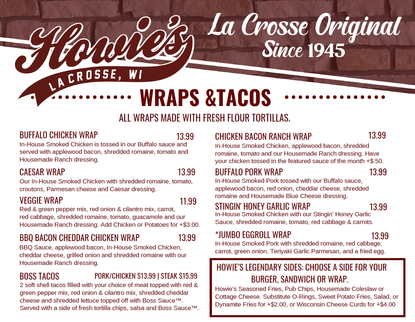 Wraps & Tacos, Tacos & Wraps. However you say it, you’re getting bold flavors all wrapped up in a warm tortilla. Pick your favorite meats, veggies and sauces–then dig in! Dine in or carry out, it’s a fresh and tasty win every time.